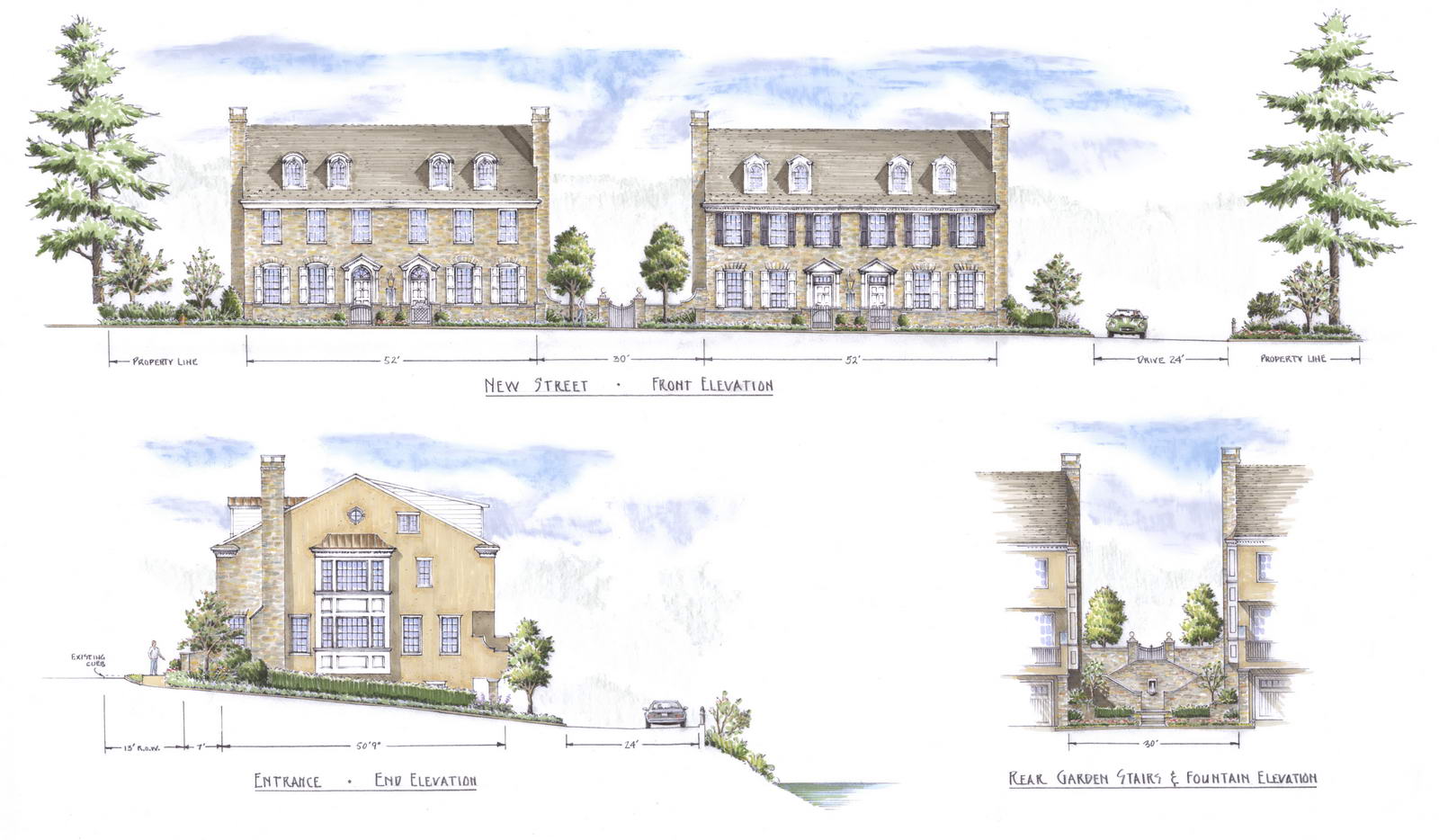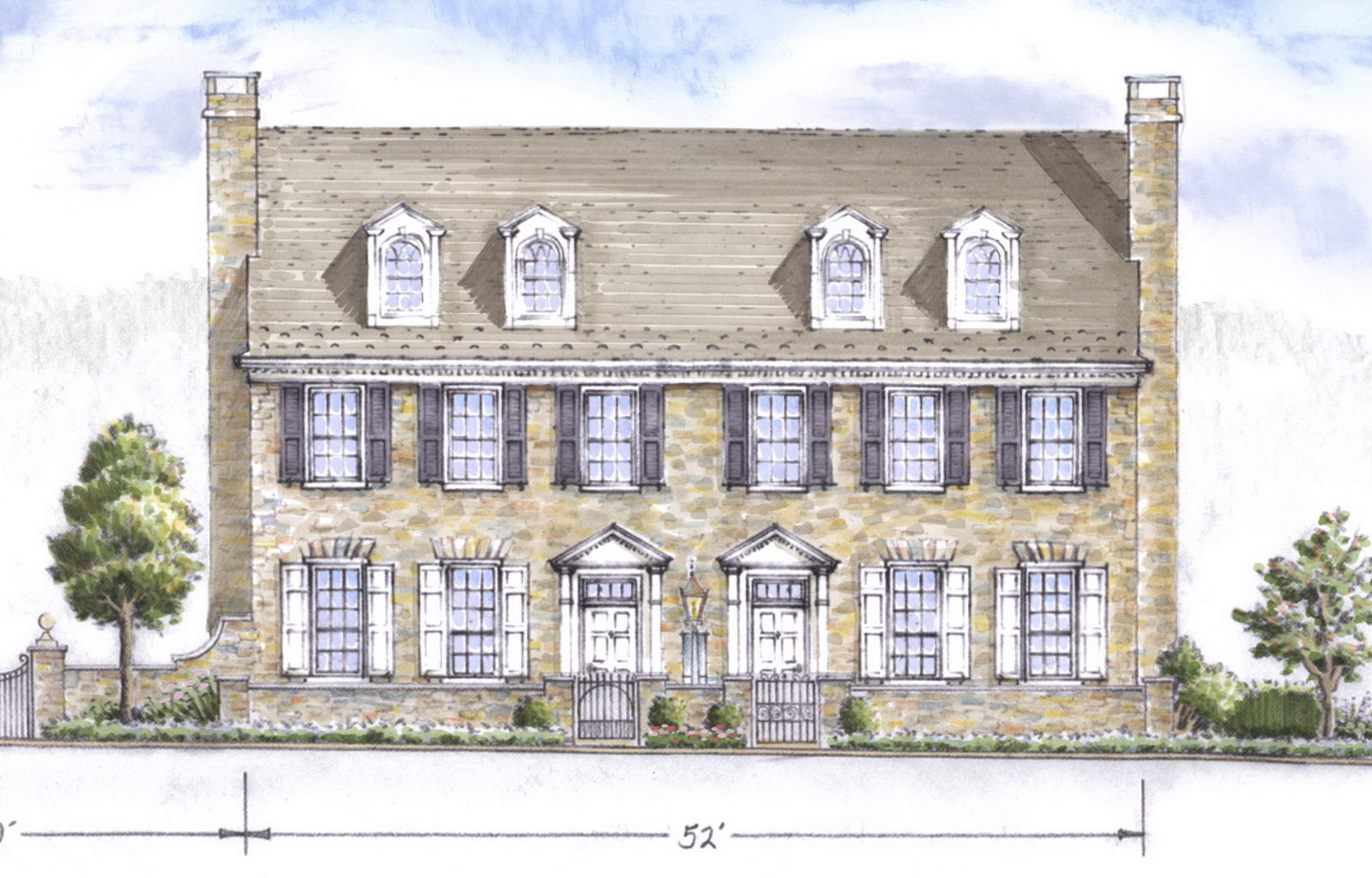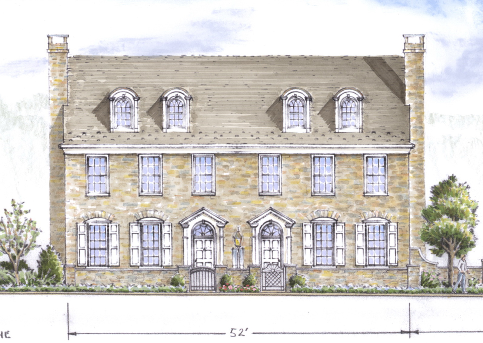 Architecturally styled Federal rowhouses' historic brick facade, cobblestone and wrought-iron private street entrance gate create an authentic late 18th century period-look for these 4,100-SF, four-story townhome residences. These design plans will hold muster with any Historical Architectural Review Board, and could easily fit into historic areas like Fairfax County, Virginia, or Georgetown, Washington DC. Get the best of both worlds-the opportunity to live in a classic rowhouse brought into modern times with historically approved architectural accents-an artful approach to a modern maintenance-free life style.