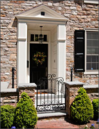 The residences are constructed with hand-chiseled hammered stone — individually fitted into the building facade, majestic slate roofs with cornice work of eight-piece crown molding, soffits and dormers, copper snow guards and working wood shutters with wrought-iron hardware. Combining pastoral Bucks County surroundings with the conveniences of walk-to-town living and services, that also includes outside building maintenance as well as snow and trash removal.