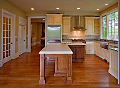 Enter your luxurious townhome from the cobblestone street entrance and wrought-iron gate through an eight-foot mahogany solid-wood door, or from the lower courtyard level's two-car garage elevator entry that will take you to all four-floors. The first-floor living room boasts a working fireplace, 10' ceilings and 12" baseboards with crown molding in the living, dinning and family rooms. The state-of-the-art kitchen has custom made hand-tooled cabinets, top of the line appliances — Wolf Range and Sub-Zero fridge and limestone counters. Throughout the residence you will find 5" wide white oak floors, 9' ceilings, 10" baseboards and 8' doors.