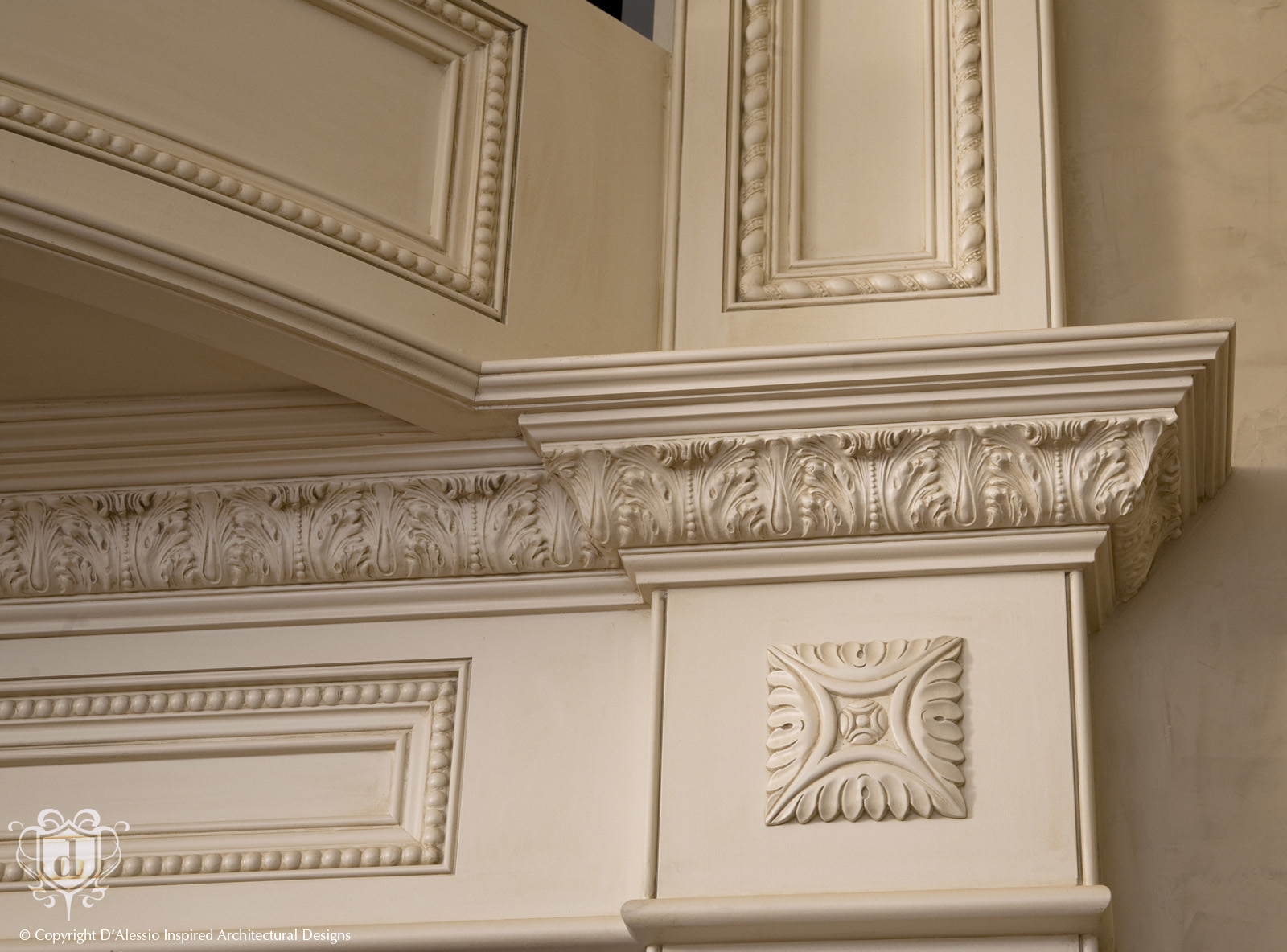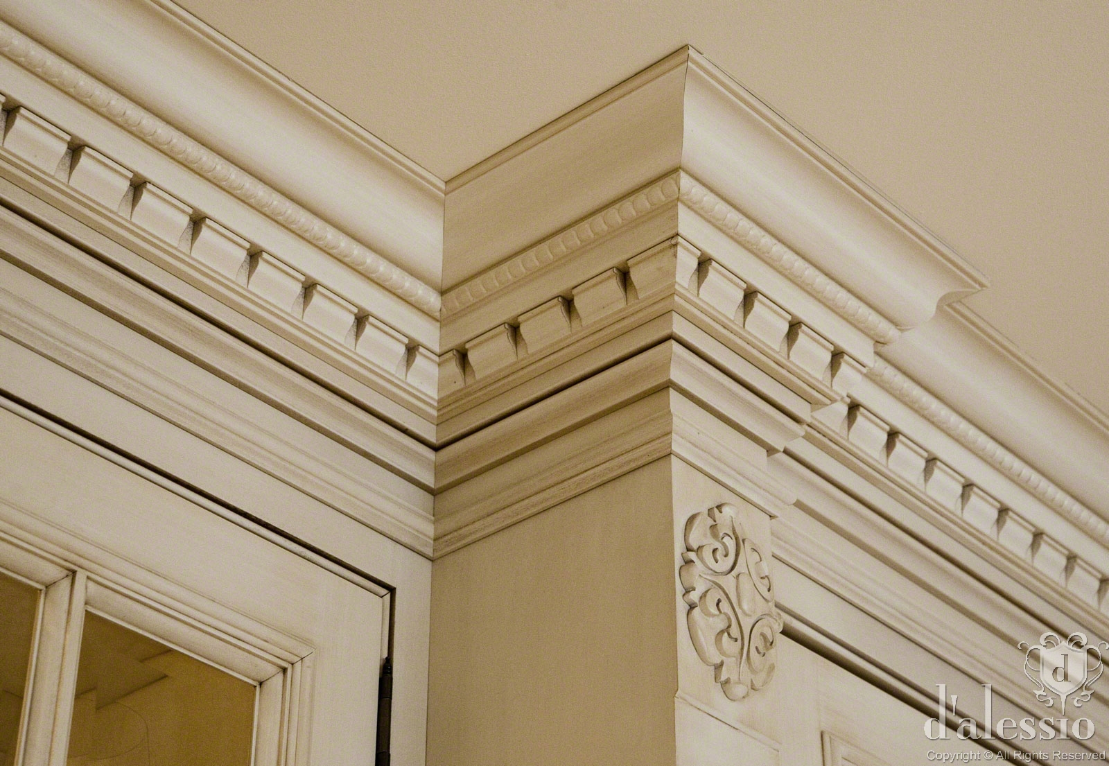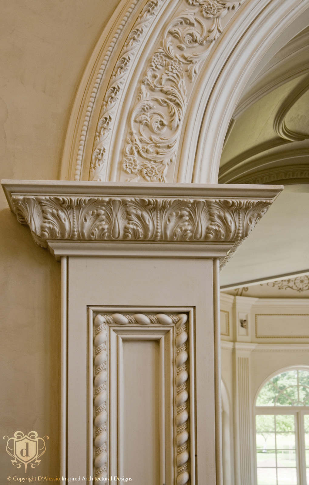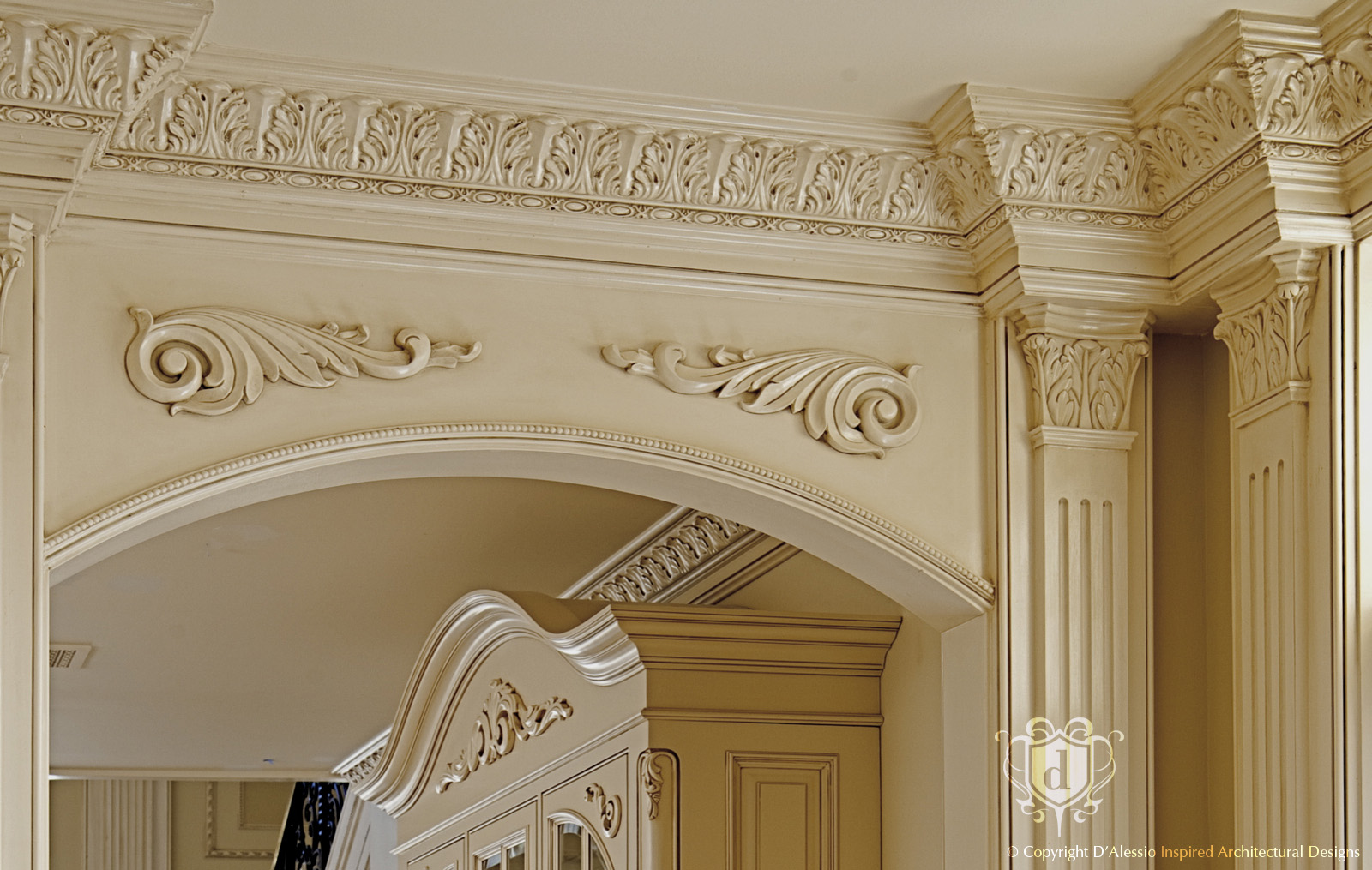 In addition to an extensive product selection, White River Hardwoods trademark ornamental mouldings, inspired by classical designs are functional with meticulous attention paid to handcrafted historical motif integrity. White River's exquisite mouldings and architectural woodcarvings allow D'Alessio design's artistic authenticity adding elegance and refinement for unique one-of-a-kind interior design.