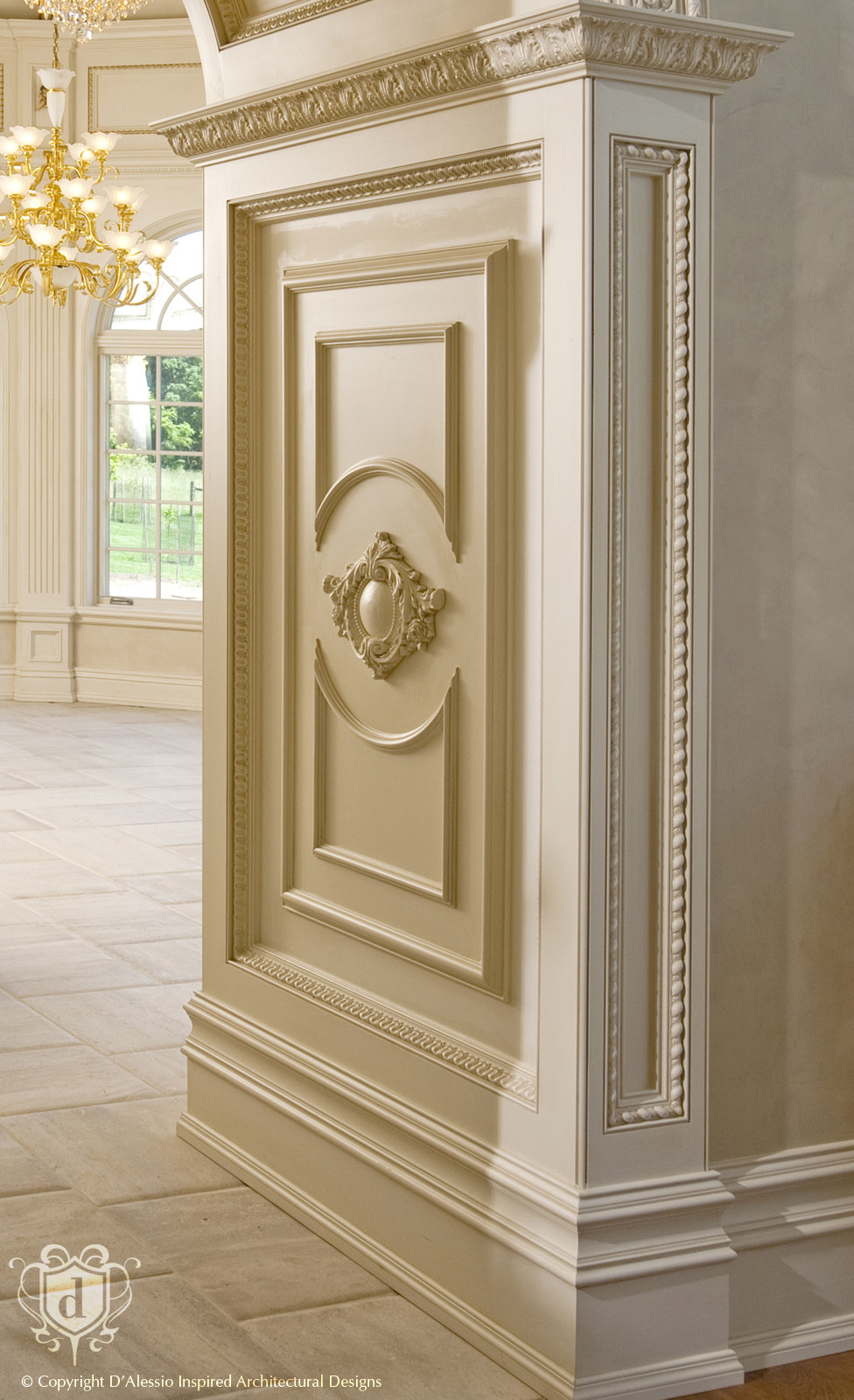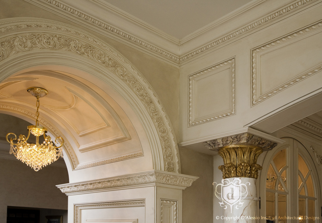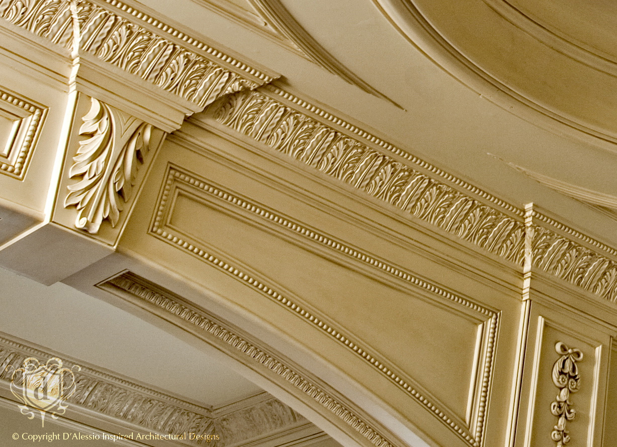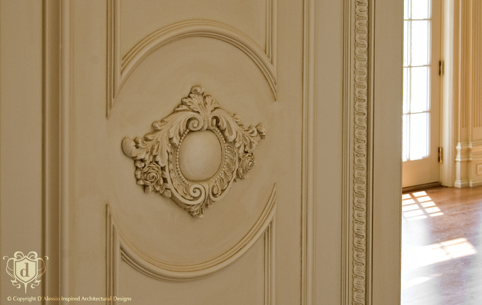 In addition to an extensive product selection, White River Hardwoods trademark ornamental mouldings, inspired by classical designs are functional with meticulous attention paid to handcrafted historical motif integrity. White River's exquisite mouldings and architectural woodcarvings allow D'Alessio design's artistic authenticity adding elegance and refinement for unique one-of-a-kind interior design.
